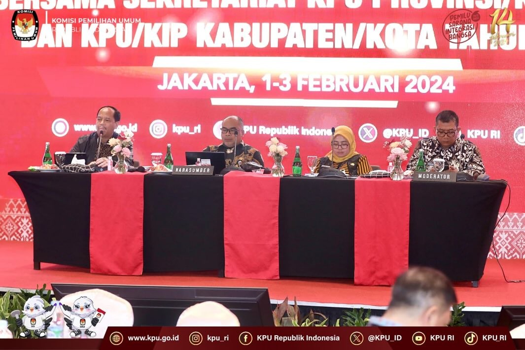 Jakarta, 2 Februari 2024 – Hari kedua Rapat Kerja Sekretariat Jenderal KPU Bersama Sekretaris KPU Provinsi / KIP Aceh dan KPU/KIP Kabupaten/Kota Tahun 2024 dimeriahkan dengan sesi diskusi panel pada hari Jumat (2/2/2024). Diskusi ini menghadirkan para narasumber dari berbagai biro di KPU RI untuk membahas berbagai topik penting terkait penyelenggaraan Pemilu 2024.
