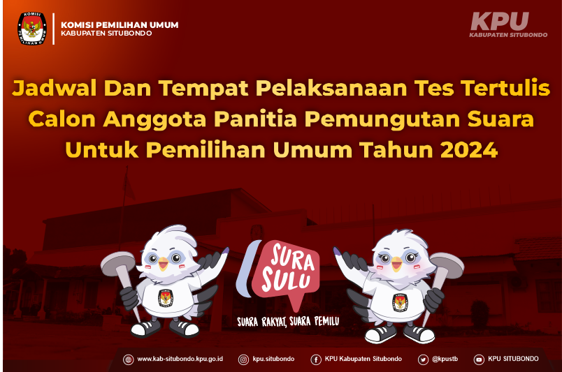 Jadwal Dan Tempat Pelaksanaan Tes Tertulis Calon Anggota Panitia Pemungutan Suara Untuk Pemilihan Umum Tahun 2024 dapat di DOWNLOAD DISINI
