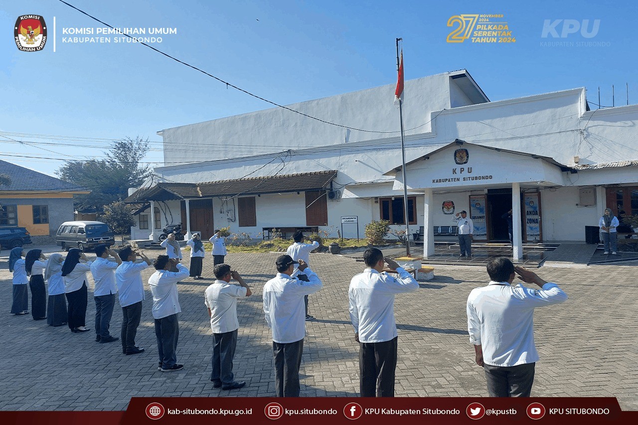 Jajaran Kesekretariatan KPU Kabupaten Situbondo Gelar Apel Pagi di Halaman Kantor