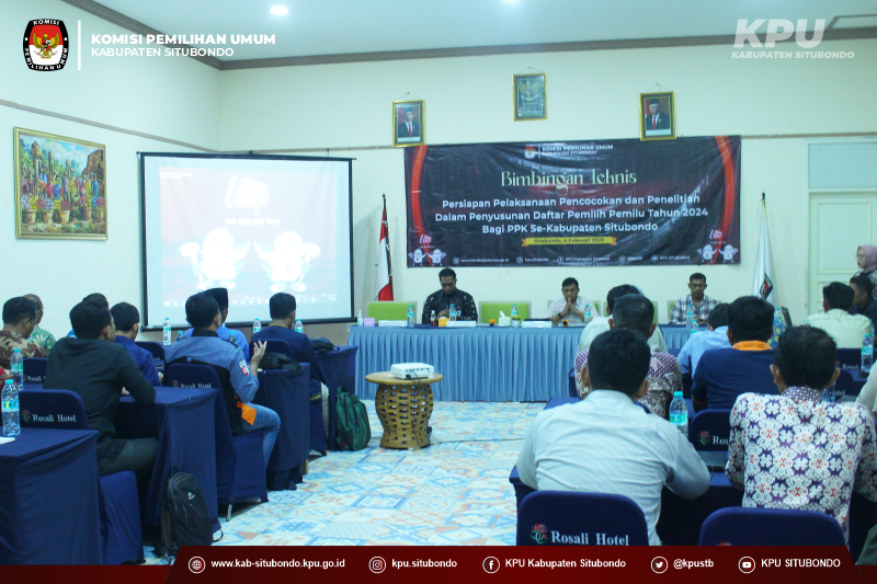 kab-situbondo.kpu.go.id - Komisi Pemilihan Umum (KPU) Kabupaten Situbondo menggelar kegiatan Bimbingan Teknis Persiapan Pelaksanaan Pencocokan dan Penelitian Dalam Penyusunan Daftar Pemilih Pemilu tahun 2024, Sabtu (4/2) Siang di Hotel Rosali.