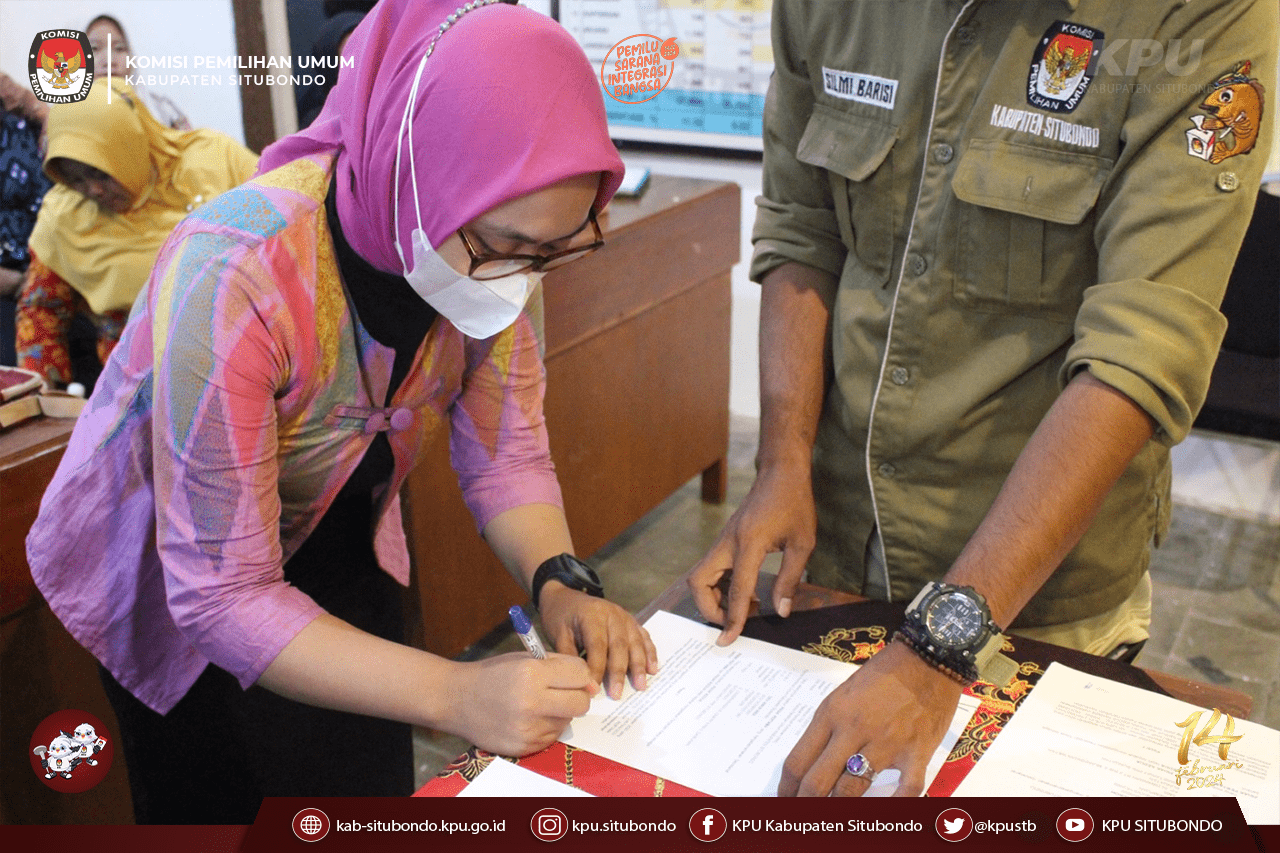 KPU Kabupaten Situbondo melaksanakan Penandatanganan SPK dan Penyerahan SK Tenaga Pendukung Sekretariat Panitia Pemilihan Kecamatan (PPK) Se-Kabupaten Situbondo untuk Pemilu Tahun 2024