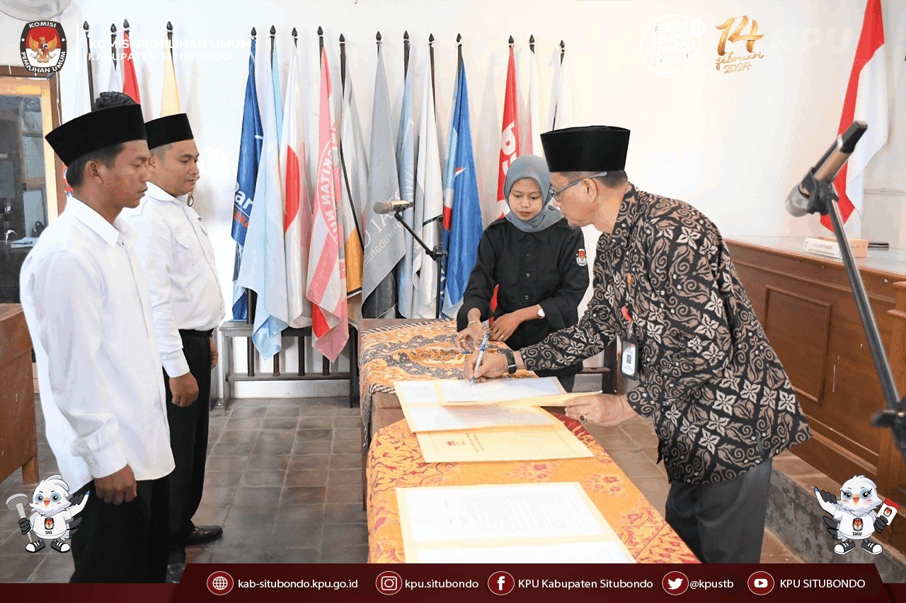 Situbondo, 24 Januari 2024 - Komisi Pemilihan Umum (KPU) Kabupaten Situbondo, Rabu (24/01) melaksanakan Pelantikan dan Pengambilan Sumpah Pergantian Antar Waktu (PAW) Panitia Pemilihan Kecamatan (PPK) Kecamatan Arjasa dan Panitia Pemungutan Suara (PPS) desa Panji Lor Kecamatan Panji serta PPS Desa Ketowan Kecamatan Arjasa di Ruang Media Center KPU Kabuapten Situbondo, Jl. Cendrawasih No.32 Situbondo.