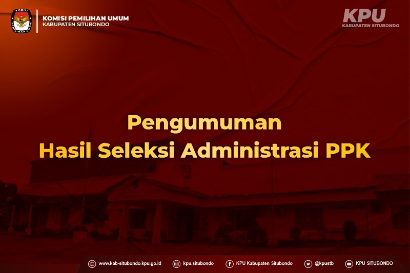Pengumuman Hasil Seleksi Administrasi PPK Sabtu, 04 Mei 2024 09:00 166 Pengumuman Hasil Seleksi Administrasi PPK DOWNLOAD DISINI Bagikan: Telah dilihat 166 kali