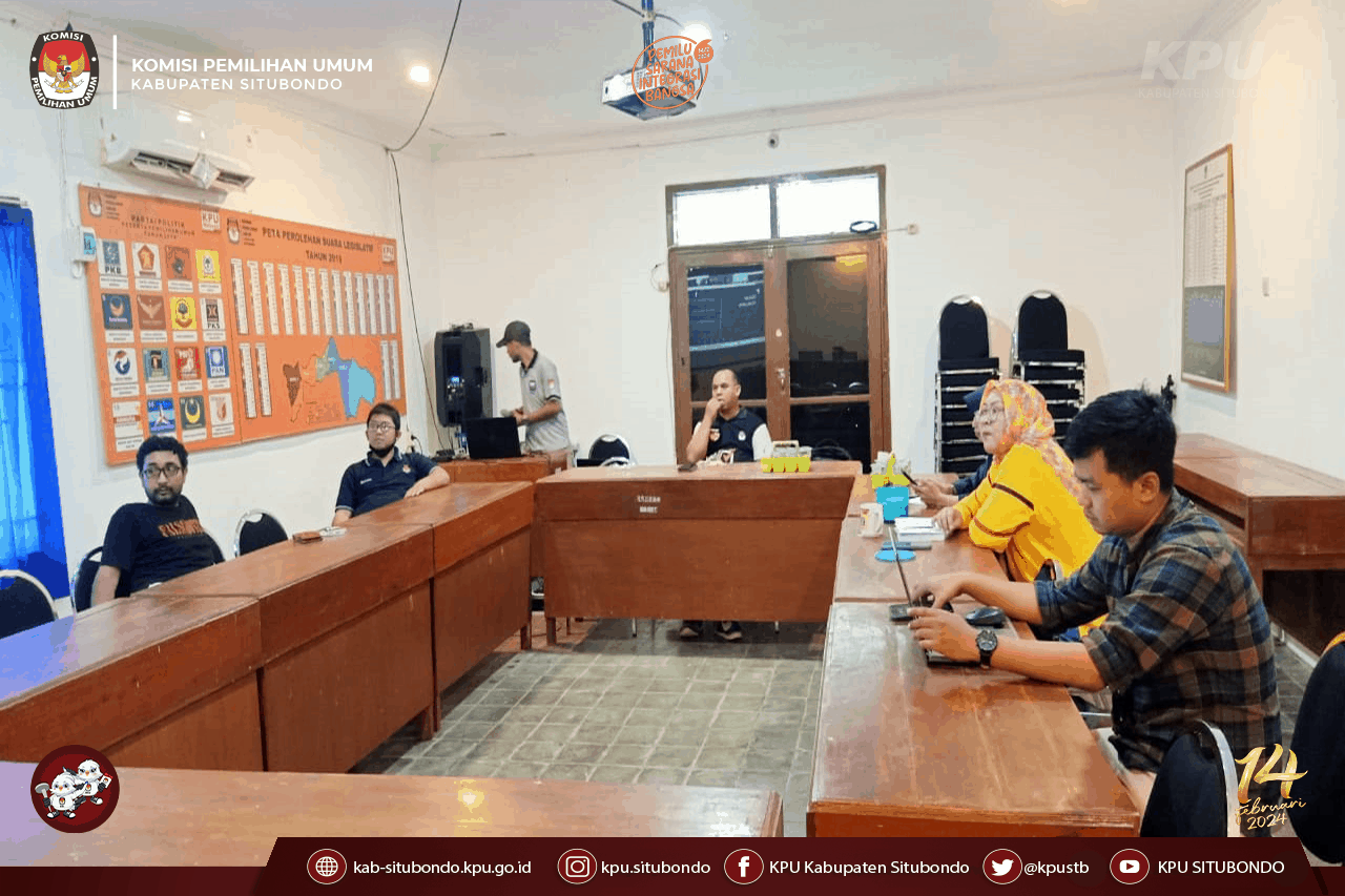 Bertempat di ruang Media Center pada pukul 09.00 WIB Sekretaris beserta seluruh jajaran Aparatur Sipil Negara (ASN) KPU Kabupaten Situbondo serentak mengikuti Sosialisasi Penyusunan dan Evaluasi Kinerja Periodik Pegawai (SKP) Tahun 2023 melalui aplikasi E-Kinerja di Lingkungan Komisi Pemilihan Umum.