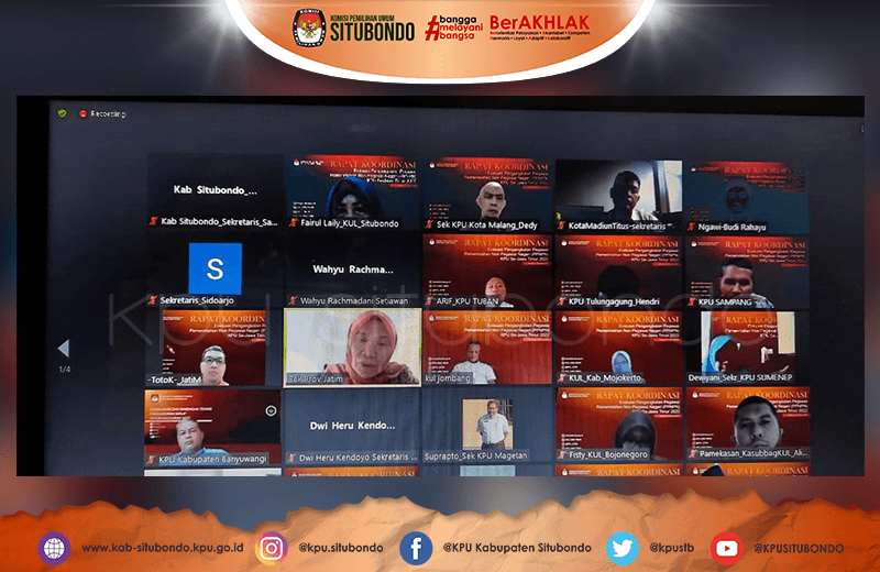kab-situbondo.kpu.go.id - Pasca pengangkatan Pegawai Pemerintah Non Pegawai Negeri (PPNPN) beberapa hari yang lalu, kini KPU Provinsi Jawa Timur langsung menggelar Rapat Koordinasi Evaluasi Pengangkatan PPNPN yang diikuti oleh Sekretaris dan Kepala Sub Bagian Keuangan, Umum dan Logistik (Kasubbag. KUL) KPU Se Jawa Timur secara virtual Sabtu, (05/02/2022).