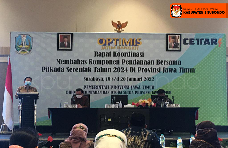 Dalam rangka menindaklanjuti surat dari Sekda Provinsi Jawa Timur Nomor : 131/1019/011.2/2022 tanggal 10 Januari 2022, Hari ini Ketua KPU Kabupaten Situbondo Marwoto menghadiri Rakor Membahas Komponen Pendanaan Bersama Pilkada Serentak Tahun 2024 Di Provinsi Jawa Timur yang diadakan pada tanggal 19 – 20 Januari 2022 bertempat di Novotel Samator East Surabaya Hotel, Jl.Raya Kedung Baruk No 26-28, Surabaya. Turut diundang dalam rapat tersebut Kepala Bappeda Provinsi Jawa Timur, Kepala BPKAD Provinsi Jawa Timur, Bakesbangpol Provinsi Jawa Timur,Kepala Biro Hukum Setda Provinsi Jawa Timur, Ketua KPU Provinsi Jawa Timur, Ketua Bawaslu Provinsi Jawa Timur. Rapat Koordinasi dimulai pada tanggal 19 januari 2022 dengan agenda Laporan Panitia Penyelenggara oleh Kepala Biro Pemerintahan dan Otonomi Daerah Sekda Provinsi Jawa Timur, dan dilanjutkan dengan sambutan Pembukaan dan pengarahan oleh Asisten Pemerintahan dan Kesradan ditutup dengan dukungan Pemerintah terhadap Pendanaan Bersama Pilkada Serentak Tahun 2024 di Provinsi Jawa Timur oleh Direktur Fasilitasi KDH dan DPRD, Dirjen Otda Kementerian Dalam Negeri RI. Hari berikutnya tanggal 20 Januari 2022 Rapat dilanjutkan dengan agenda Penyampaian Materi, Diskusi dan tanya jawab, Dukungan DPRD Provinsi Jawa Timur terhadap pelaksanaan Pilkada Serentak Tahun 2024 di Provinsi Jawa Timur oleh Ketua Komisi A DPRD Provinsi Jawa Timur,Komponen Pendanaan Bersama Pilkada Serentak Tahun 2024 di Provinsi Jawa Timur, oleh Ketua KPU dan juga Ketua Bawaslu Provinsi Jawa Timur, dan ditutup dengan kesimpulan Rakor oleh Kepala Biro Pemerintahan dan Otonomi Daerah Sekda Provinsi Jawa Timur. Ketua KPU Kabupaten Situbondo mengungkapkan “tujuan rakor tersebut, esensinya anggaran pilkada sudah terencana dan teranggarkan sesuai payung hukum yg ada ( dana cadangan ) di masing-masing daerah sehingga tidak terjadi masalah ketika sudah sampai waktunya pemda melakukan NPHD dengan KPU pada saat pelaksanaan pilkada serentak 2024 nanti,” ujarnya. (HK)