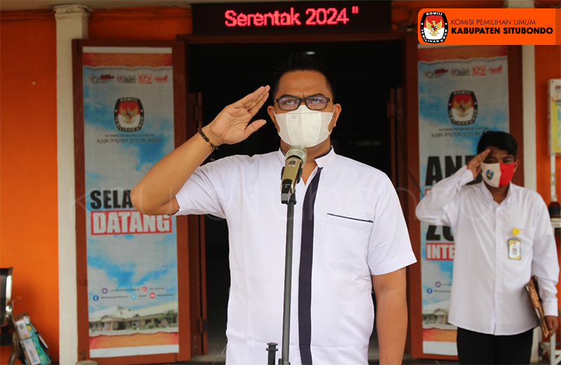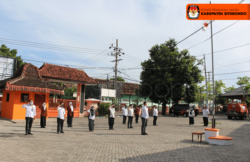 Jum`at, 31/12 tepat pukul 10.00, Komisioner dan Sekretariat KPU Kabupaten Situbondo yang melaksanakan piket menghentikan sejenak seluruh aktivitasnya, untuk membacakan teks Pancasila. Pancasila dibacakan oleh .Sekretaris KPU Kabupaten Situbondo, Sanayo S.Ag. dan diikuti oleh Sekretariat yang bertugas. Teks dibacakan dengan sikap sempurna serta tetap mematuhi protokol kesehatan. Sesuai surat edaran Komisi Pemilihan Umum Republik Indonesia No. 604/SDM.03.5-SD/05/KPU/VI/2021 tanggal 30 Juni 2021, perihal Himbauan Pelaksanaan Apel Pagi, setiap hari Rabu dan Juma'at tepat pukul 10.00 waktu setempat, setiap Pejabat dan Pegawai dilingkungan KPU disemua tingkatan, wajib mendengarkan Teks Pancasila dengan sikap sempurna. Kondisi masyarakat Indonesia yang majemuk, beragamnya budaya,adat istiadat hingga agama, menjadikan Pancasila sebagai fondasi dasar berdirinya Indonesia. Dan telah terbukti mampu mempertahankan perdamaian dan persatuan bangsa Indonesia. Dengan membacakannya disetiap minggu, diharapkan sebagai pengingat kita untuk dapat mengimplementasikan nilai-nilai dari setiap silanya, sebagai dasar dalam bersikap dan berperilaku.(MF)"