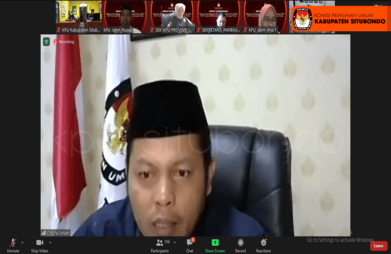 kab-situbondo.kpu.go.id - Guna mempersiapkan perencanaan penyusunan anggaran Pemilihan Serentak Tahun 2024, Komisi Pemilihan Umum Provinsi Jawa Timur (KPU Jatim) bersama dengan 38 KPU Kabupaten/ Kota di wilayahnya melakukan Rapat Koordinasi (Rakor) Penyusunan Anggaran Pemilihan Serentak Tahun 2024 hari ini (Rabu, 25/8). Rakor dimulai dari pukul 09.00 - 12.30 WIB secara virtual. Hadir dari KPU Kabupaten Situbondo dalam rakor ini antara lain, Anggota KPU Kabupaten Situbondo Divisi Perencanaan, Data dan Informasi, Usman Hadi. Sementara dari sekretariat KPU Kabupaten Situbondo ada Plt.Sekretaris, Sanayo, serta staf subbagian Program dan Data. Sementara peserta terdiri dari Ketua, Divisi Perencanaan; Data & Informasi, Sekretaris, dan Kasubbag/ Subkoordinator Program & Data dari 38 KPU Kabupaten/ Kota di Jawa Timur. Ketua KPU Provinsi Jatim, Choirul Anam pada sambutannya menjelaskan latar belakang diselenggarakannya rakor ini ialah sebagai respon atas banyaknya permintaan Pemerintah Daerah kepada KPU Kabupaten/ Kota terkait Rencana Kebutuhan Barang (RKB)/ Rencana Anggaran Biaya (RAB) Pemilihan Serentak Tahun 2024. ""KPU Provinsi sendiri pada bulan Juli kemarin juga telah diminta Pemerintah Provinsi Jawa Timur untuk mengirimkan RKB Pemilihan Gubernur dan Wakil Gubernur Tahun 2024,"" kata Anam (25/8/2021). Selanjutnya, Ketua KPU Provinsi Jatim mengarahkan agar KPU Kabupaten/ Kota dalam melakukan penyusunan anggaran memperhatikan angka psikologis, dan tidak asal memaksimalkan kebutuhan anggaran. ""Jadi tolong Kawan-kawan memperhatikan angka psikologis. Angka psikologis ini diantaranya meliputi inflasi, jumlah pemilih dan jumlah TPS, serta pandemi Covid-19,"" himbau Ketua KPU Jatim. Pria yang akrab disapa Anam ini menuturkan pula bahwa di dalam RKB KPU Provinsi, KPU Provinsi Jatim memproyeksikan jumlah pemilih ada pertambahan sebesar 1% setiap tahun. Lalu, dimasa pandemi Covid-19, jumlah pemilih di setiap TPS maksimal 500 orang sebagaimana pada Pemilihan 2020, dan ini berdampak pada penambahan jumlah TPS. Kemudian kebutuhan khusus terkait pandemi Covid-19, misalnya kebutuhan APD, bahan kebutuhan umum, kebutuhan alat kesehatan. Serta ada penambahan bilik suara khusus yang disiapkan untuk mereka yang terindikasi terpapar Covid-19 sehingga ini juga mempengaruhi kebutuhan anggaran. Usai pembukaan, acara dilanjutkan dengan pengarahan dari Anggota KPU Provinsi Jatim, Rochani dan Nurul Amalia. Berikutnya dilanjutkan dengan penyampaian materi dari Divisi Perencanaan dan Logistik KPU Provinsi Jatim, Miftahur Rozaq terkait Permendagri Nomor 54 dan Perubahannya yakni Permendagri 4 Tahun 2020, penyampaian materi berikutnya adalah dari Sekretaris KPU Provinsi Jatim, Nanik Karsini mengenai Keputusan KPU Nomor 1312/HK.03.1-KPT/01/KPU/VIII/2019 sebagaimana diubah terakhir dengan Keputusan KPU Nomor 444/ /HK.03.1-Kpt/01/KPU/IX/2020 tentang standart dan petunjuk teknis penyusunan anggaran kebutuhan Barang/Jasa dan Honorarium Penyelenggaraan Pemilihan Gubernur dan Wakil Gubernur, Bupati dan Wakil Bupati dan/atau WaliKota dan Wakil WaiKota Tahun 2020.(ZH) "