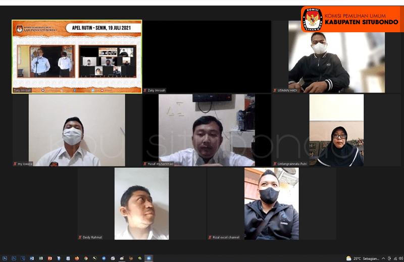 Menindaklanjuti Surat Edaran Komisi Pemilihan Umum Republik Indonesia Nomor 11 Tahun 2021 tentang Penyesuaian Sistem Kerja Pegawai Di Lingkungan Komisi Pemilihan Umum, Komisi Pemilihan Umum Provinsi/Komisi Independen Pemilihan Aceh dan Komisi Pemilihan Umum/Komisi Independen Pemilihan Kabupaten/Kota Pada Masa Pemberlakuan Pembatasan Kegiatan Masyarakat Darurat COVID-10 Di Wilayah Jawa dan Bali Tanggal 3 Juli 2021 serta Surat Dinas Komisi Pemilihan Umum Republik Indonesia Nomor : 604/SDM.03.5-SD/05/KPU/VI/2021 Tanggal 30 Juni 2021 Perihal Himbauan Pelaksanaan Apel Pagi untuk pertama kalinya Komisioner dan Pegawai KPU Kabupaten Situbondo melaksanakan apel pagi secara daring tepat pada Pukul 07.30 WIB. Kegiatan apel secara daring ini dilakukan dalam rangka mencegah penyebaran Virus Covid-19, dengan tetap menjunjung tinggi rasa kebangsaan dan cinta Tanah Air Republik Indonesia, wujud pengabdian terhadap rakyat, Negara Kesatuan Republik Indonesia, serta ketaatan terhadap ideologi Pancasila dan Undang-Undang Dasar 1945. Pelaksanaan apel pagi KPU Kabupaten Situbondo secara daring juga merupakan tindak lanjut dari diberlakukannya pelaksanaan tugas kedinasan dari rumah atau tempat tinggal masing-masing Pegawai, sebagai bentuk tindak lanjut SE KPU RI Nomor 11 Tahun 2021. Berdasarkan Himbauan tersebut KPU Kab.Situbondo melaksanakan Apel Pagi Rutin pada hari Senin 19 Juli 2021 dilingkungan kantor KPU.Kab.Situbondo yg dipimpin oleh Anggota KPU Kab.Situbondo Bapak Samsul Hidayat, Komandan apel Samsul Arifin, Pembawa Teks Pancasila Zainul Hannan, Pembaca Teks UUD 1945 Aris Budi Cahyono, dan Pembaca Panca Prasetya Korps Pegawai Republik Indonesia Hendrik Kristanto. (HK)"