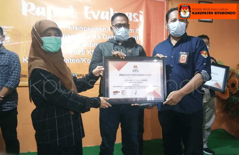 kab-situbondo.kpu.go.id - Kegiatan Rapat Evaluasi Perencanaa dan Data Pemilihan Serentak Lanjutan Tahun 2020 di Kantor KPU Kabupaten Magetan dilaksanakan dan didahului dengan Menyanyikan lagu Indonesia Raya dilanjutkan dengan Laporan Ketua Panitia yang disampaikan oleh Bapak Totok Suahrto (Kabbag Perencanaan dan SDM). Kemudian sambutan sekaligus pembukaan oleh Ketua KPU Provinsi Jawa Timur yang diwakili oleh Ibu Nurul Amilia, S.Si Divisi Data dan Informasi KPU Provinsi Jawa Timur untuk pembukaan pada hari pertama, Jum`at 18 Desember 2020 di laksanakan di Kantor KPU Kabupaten Magetan. Selanjutnya acara rapat koordinasi tersebut dipandu oleh Bapak Miftahur Rozaq (Divisi Perencanaan dan Logistik KPU Provinsi Jawa Timur) beliau menyampaikan kepada seluruh peserta rapat Evaluasi di 19 KPU Kabupaten/Kota “agar menyampaikan seluruh tahapan baik tahapan perencanaan anggaran dan Pemutakhiran Data Pemilih untuk dapatnya di jadikan Buku dan dilaporkan kepada KPU Provensi Jawa Timur” ujar Miftahur Rozaq. Selanjutnya acara di lanjutkan dengan serah terima penghargaan kepada masing-masing pemenang nominasi proposal perencanaan program dan anggaran serta proposal pemutakhiran data pemilih, dimana dalam penghargaan itu KPU kabupaten Situbondo mendapatkan Juara ke 2 penyusunan Proposal Uji Publik untuk DPT partisipatif penghargaan diberikan langsung oleh Ketua KPU Provinsi Jawa Timur kepada Divisi Rendatin KPU Kabupaten Situbondo. pada jam 12.00 WIB acara ditutup oleh Bapak Ketua KPU Provinsi Jawa Timur Bapak Choirul Anam. Editor : Tim Editor Penulis : Tim Redaksi