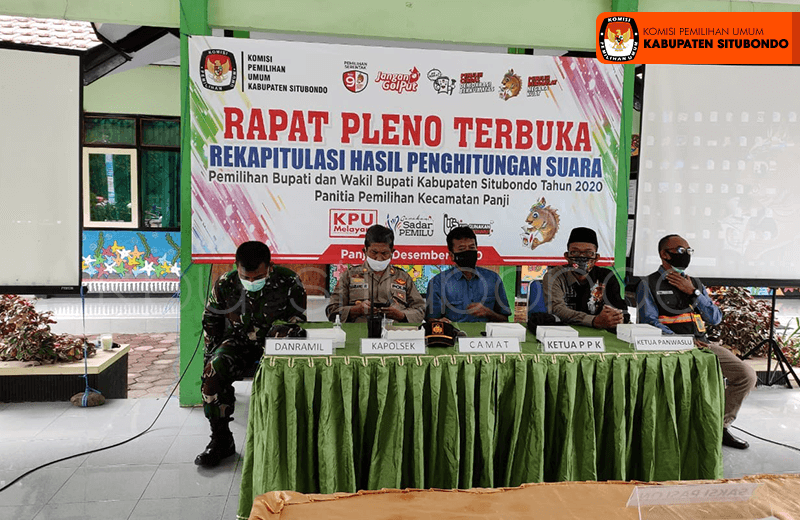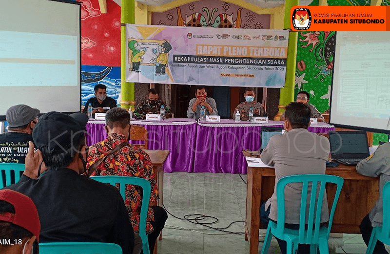 kab-situbondo.kpu.go.id - Rekapitulas Perolehan Suara Calon Bupati dan Wakil Bupati Situbondo di Kecamatan Jangkar dilaksanakan pada Hari Sabtu tanggal 12 Desember 2020 jam 19.00 WIB bertempat di Pendopo kecamatan Jangkar dan dikituti oleh 3 orang dari Forkopimka Kecamatan jangkar, satu orang dari KPUD Situbondo 8 Orang Anggota PPK kecamatan Jangkar dan sekretariat, 4 Orang Panwaslu Kecamatan Jangkar, 3 orang PKD dari desa Agel, Jangkar dan Sopet 24 Orang dari Panitia Pemungutan Suara Sekecamatan Jangkar, 2 orang saksi paslon satu dan satu orang saksi dari paslon Dua dilaksanakan dengan metode :