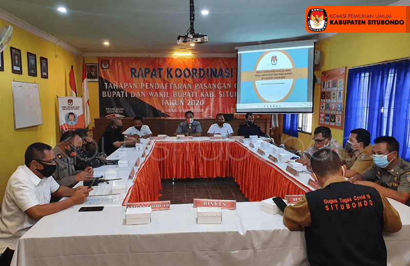 kab-situbondo.kpu.go.id - Jum’at (04/09/20), KPU Situbondo laksanakan acara seremonial pembukaan Tahapan Pencalonan Bupati dan Wakil Bupati Situbondo Serentak Lanjutan Tahun 2020. Acara yang digelar di halaman kantor KPU Situbondo ini melibatkan pihak Badan Kesatuan Bangsa dan Politik (BAKESBANGPOL), Bawaslu Kabupaten Situbondo, Kodim 0823, Polres Situbondo, Ikatan Dokter Indonesia (IDI) cabang Situbondo, Pemadam Kebakaran (DAMKAR), Satpol PP, Dinas Perhubungan. Sangat tampak bahwa KPU Situbondo beserta jajarannya mengenakan Alat Pelindung Diri (APD) seperti Face Shield, Handscoon dan Masker. Masing-masing meja yang disediakan KPU Situbondo terdapat Handsanitizer. Undangan yang datang selain di cek suhu juga diwajibkan agar menggunakan masker. Ketua KPU Situbondo, Marwoto SE, dalam sambutannya mengatakan, ""Sesuai dengan tahapan, jadwal dan program PKPU 5 Tahun 2020. Bapak dan Ibu sekalian, KPU mempunyai tanggung jawab sesuai regulasi untuk melaksanakan penerimaan pendaftaran bakal pasangan calon Bupati dan wakil bupati dalam pemilihan serentak lanjutan ini. Pada tahun 2020 ini, sesuai dengan tahapan yang sudah dilakukan oleh divisi tekhnis dan penyelenggaraan, saya informasikan bahwa, Kabupaten Situbondo tidak ada calon perseorangan. Yang kedua bapak ibu sekalian, hingga saat ini, kami masih menanti dan meraba-raba siapakan nanti yang hadir di bawah terop ini. Inilah tugas kami, hari ini memastikan bahwa KPU dalam proses pendaftaran ini sudah siap untuk menerima bakal calon."" Hingga pukul 16.00, masih belum ada bakal calon yang datang untuk mendaftarkan dirinya menjadi calon bupati dan wakil Bupati Situbondo serentak lanjutan tahun 2020. Masih ada sisa waktu dua hari lagi dalam tahapan pendaftaran pasangan bakal calon. Yaitu hari sabtu dan minggu. Hari minggu sebagai hari terakhir pendaftaran calon Bupati dan wakil Bupati Situbondo dibuka hingga pukul 24.00 WIB. Penulis : Imam Sufyan Editor : Tim Editor