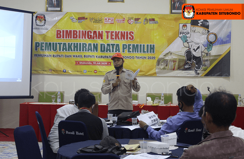 Sabtu (11/07/20) PPK Kecamatan Situbondo menyelenggarakan rapat bimbinngan teknis (BIMTEK) guna untuk persiapan penugasan Petugas Pemuntakhiran Data Pemilih (PPDP) di setiap desa dan kelurahan . Dalam suasana pandemi yang masih berlangsung, rapat ini tetap memperhatikan protokol kesehatan dengan mewajibkan seluruh peserta rapat untuk memakai masker dan mengecek suhu semua peserta rapat. Ketua PPK Kecamatan Situbondo, Syamsul Arifin, memberikan bimbingan teknik kepada para anggota Panitia Pemungutan Suara (PPS). Dari dua kelurahan dan empat desa, masing-masing mendelegasikan dua orang anggota PPS. Setelah itu isi rapat tersebut di mulai dari sambutan ketua ppk kecamatan situbondo bapak Syamsul Arifin serta beberapa arahan tentang pencoklitan yang akan dilakukan serentak pada tanggal 15 juli 2020. bapak samsul arifin berharap agar semua pps yang hadir selalu memantau para petugas PPDP di lapangan agar pencoklitan berjalan dengan lancar dan bisa menghasilkan data yang akurat. Setelah sambutan dan pendahuluan yang di berikan oleh ketua PPK Kecamatan Situbondo Dilanjut dengan penjelasan tentang perlengkapan yang akan di peroleh PPDP pada saat melakukan pencoklitan termasuk protokol kesehatan mengingat pada tahapan pilkada tahun ini dilaksanakan di tengah pandemi virus corona . jadi bapak Ali Tufan mengingatkan kepada para pps agar selalu memantau petugas PPDP yang melakukan pencoklitan agar tetap mengikuti protokol kesehatan yang telah di tetapkan oleh pemerintah mengingat hal tersebut bisa berakibat fatal jika kelalaian tersebut sampai tercium oleh badan pengawas pemilu (banwaslu). Aliya, bidang divisi data menguraikan materi tentang tata cara pengisian form dan penjelasan tentang kelengkapan alat alat PPDP saat pencoklitan. Di situ di jelaskan oleh beliau tentang pengisian kode kode di dalam form data pemilu seperti kode untuk pemilih TMS (tidak memenuhi syarat) kode pemilih disabilitas form A.KWK, A.A. KWK dll. Dan pada rapat kali ini juga ada pula arahan oleh salah satu komisioner KPU bapak Usman Hadi melalui via daring tentang pemaparan isi buku panduan PPDP yang akan di bagikan kepada semua petugas PPDP Sehingga ketika PPS menyelenggarakan bimtek kepada petugas PPDP nantinya PPS mampu memberikan pemahaman yg rinci kepada petugas PPDP agar tidak terjadi kesalahan pada pengisian formulir yang nantinya akan di gunakan oleh petugas PPDP saat melakukan pencoklitan. bapak Usman Hadi selaku komisioner KPU juga memberitahukan bahwa PPS juga harus aktif untuk berkoordinasi dengan kelurahan untuk penyesuaian data yang telah dilakukan pencoklitan oleh PPDP nantinya dan beliau juga mengingatkan bahwa PPDP juga harus selalu berkoordinasi dengan RT/RW setempat agar memudahkan petugas PPDP dalam melakukan pencoklitan. REDAKSI
