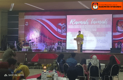kab-situbondo.kpu.go.id - 25 Mei 2019 - KPU situbondo Mengadakan Kegiatan Ramah Tamah dan Terimakasih atas partisipasi pemilih pada pemilu 2019 yang bertempat di GOR Baluran Situbondo, di hadiri oleh Anggota KPU Provinsi Jawa Timur Divisi Sosialisasi, Pendidikan Pemilih Dan Partisipasi Masyarakat Gogot Cahyo Baskoro, S.Sos dan Divisi Data dan Informasi Nurul Amailia, S. SI.