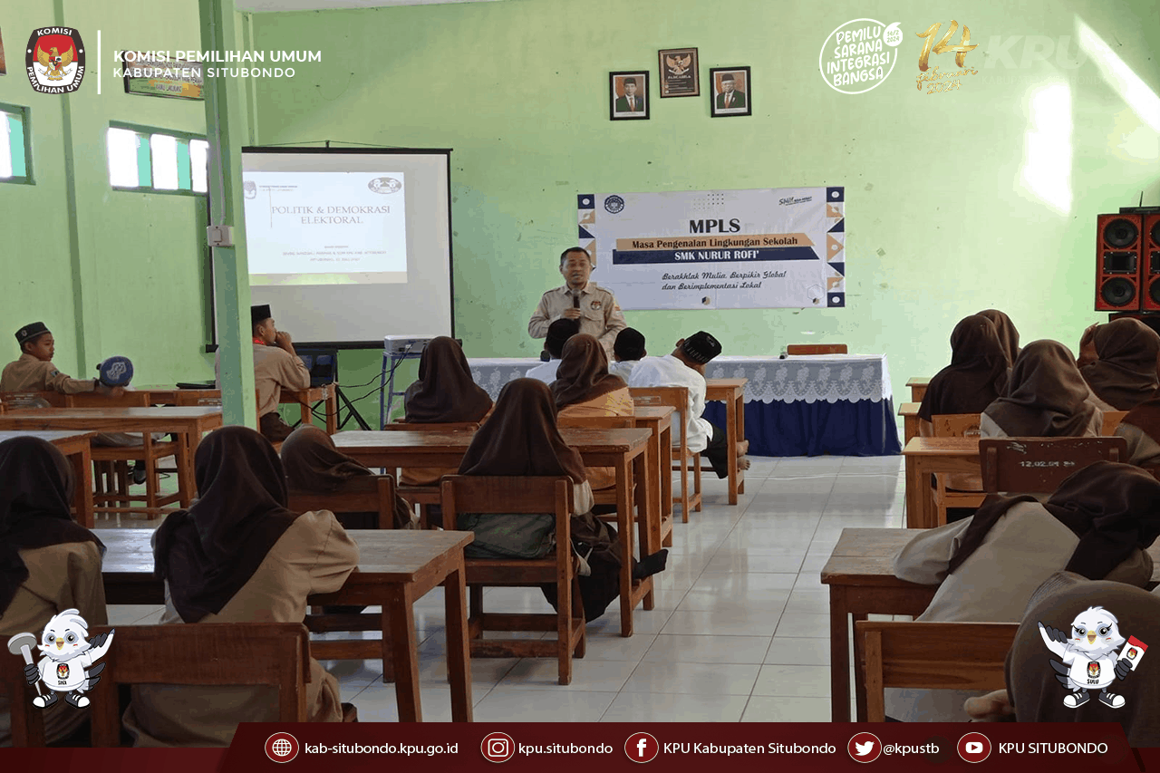Situbondo, kab-situbondo.kpu.go.id – Dalam rangka Kegiatan Masa Pengenalan Lingkungan Sekolah (MPLS) di SMK NURUR ROFI' dan sekaligus sebagai sarana untuk Sosialisasi Pendidikan Pemilih bagi Pemilih Pemula, Anggota KPU Kabupaten Situbondo Divisi Sosdiklih, Parmas, dan SDM, Imam Nawawi penuhi undangan sebagai Narasumber dalam kegiatan tersebut. Jum'at (21/07). Kegiatan ini bertujuan untuk memberikan pemahaman yang lebih baik tentang hak dan tanggung jawab dalam berpartisipasi dalam pemilihan umum kepada siswa-siswa yang baru akan memasuki hak pilihnya. acara MPLS sekaligus sosialisasi ini dirancang untuk memberikan wawasan yang komprehensif kepada pemilih pemula tentang arti penting suara mereka dalam proses demokrasi dan bagaimana peran mereka dalam mempengaruhi arah perubahan di negara. Salah satu sesi utama adalah "Pentingnya Pemilihan Umum dalam Demokrasi", di mana para siswa mendapatkan pemahaman tentang bagaimana pemilihan umum merupakan pondasi dasar dalam sistem demokrasi. Para narasumber yang ahli dalam bidang ini membagikan pengetahuan mereka tentang proses pemilihan, peran partai politik, dan dampak suara individu. Selain itu, ada juga sesi "Menelusuri Jejak Pemilihan" yang mengajak siswa untuk memahami sejarah pemilihan umum di negara kita, mengenal tokoh-tokoh penting dalam sejarah pemilihan, serta mengapa hak pilih adalah hak yang berharga. Dalam suasana yang penuh interaktif, acara ini juga menampilkan "Diskusi Pemuda: Suara Anda, Pandangan Anda" di mana siswa-siswa berkesempatan untuk berbicara tentang isu-isu penting yang mereka anggap perlu diperhatikan oleh para pemimpin politik. Ini memberikan platform bagi pemilih pemula untuk merasa dihargai dan didengar. Dalam suasana penuh semangat, siswa-siswa mengikuti rangkaian acara Sosialisasi Pendidikan Pemilih dengan antusias. Mereka berharap bahwa dengan pemahaman yang lebih baik tentang demokrasi dan hak pilih, mereka dapat berkontribusi dalam pembangunan negara yang lebih baik. Di akhir acara, semua peserta berkomitmen untuk menjadi pemilih yang bertanggung jawab dan terus mendalami pengetahuan tentang politik dan isu-isu masyarakat. Dengan semangat ini, generasi muda diharapkan dapat membawa perubahan positif melalui partisipasi aktif dalam proses demokrasi. (HK)