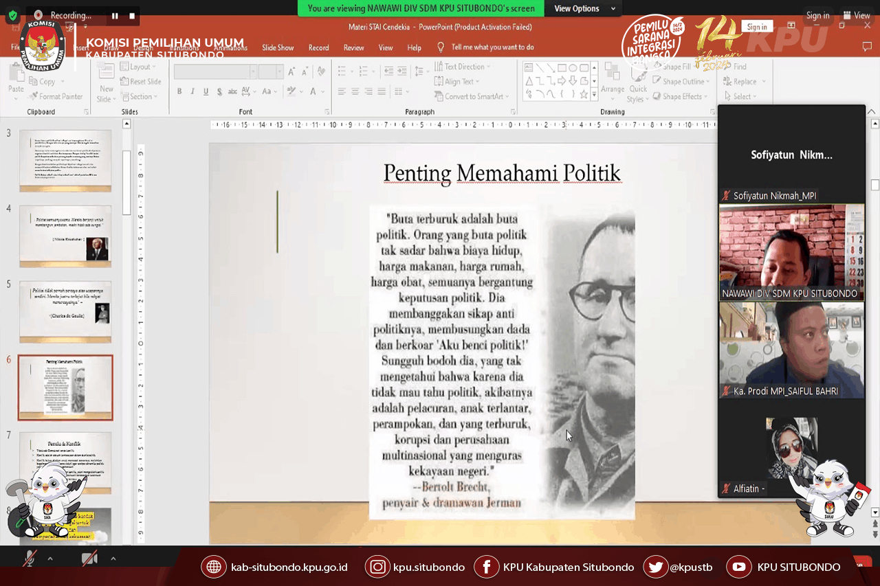 SITUBONDO, kab-situbondo.kpu.go.id – Komisi Pemilihan Umum Provinsi Jawa Timur (KPU JATIM) menggelar Rapat Koordinasi Pasca Penetapan Daftar Pemilih Tetap (DPT) Tingkat Kabupaten/Kota Se-Jawa Timur Untuk Pemilu 2024 ada hari Minggu sampai Senin (25-26/6/2023) yang bertempat di aula Kantor KPU Provinsi Jawa Timur, Jl. Tenggilis No. 1-3, Kendangsari, Kec. Tenggilis, Surabaya. Hadir dari KPU Provinsi Jawa Timur yaitu Ketua KPU Choirul Anam, komisioner divisi Data dan Informasi Nurul Amalia, komisioner divisi SDM dan Litbang Rohani dan Sekretaris KPU Nanik Karsini, serta turut terundang dari KPU Kabupaten Kota yaitu Ketua KPU, komisioner divisi perencanaan, data dan informasi serta operator Sidalih di 38 KPU Kabupaten Kota Se-Jawa Timur. Hadir dari KPU Kabupaten Situbondo adalah Ketua KPU Kabupaten Situbondo Marwoto, komisioner divisi perencanaan, data dan informasi Usman Hadi dan Operator Sidalih Rizal Ruswandi. Kegiatan di buka secara resmi oleh Ketua KPU Provinsi Jawa Timur Choirul Anam, dan didahului dengan smbutan dan pengarahan terkait kepemiluan. Dalam sambutannya Pak Anam menyampaikan mohon maaf kalau aula KPU Jawa Timur kurang memadai. Sekjen KPU RI juga sudah berkunjung ke Kantor KPU Jatim dan menjanjikan akan segera ada biaya rehab untuk melebarkan Aula kantor sehingga kalau di pakai kegiatan rakor maupun kegiatan yang lain. Gubernur Jawa Timur juga menyanggupi terkait Hibah pembangunan gedung kantor KPU Jatim yang sudah teragendakan. Selain itu, Choirul Anam juga memberikan apresiasi kepada KPU Kabupaten/Kota yang telah menyelesaikan Pleno penetapan Daftar Pemilih Tetap di masing-masing kabupaten/kota dengan dinamika yang ada. Pak Anam menyontohkan di Surabaya yang sempat ada tragedi lampu mati dan sedikit alot dalam mensingkronkan daftar pemilih yang akan ditetapkan. Selain Surabaya, Kabupaten Sumenep juga menjadi contoh karena viralnya berita komisioner divisi perencanaan, data dan informasi berpelukan dengan operator SIDALIH selepas melaksanakan penetapan DPT. Hal itu karena Kabupaten Sumenep yang letak geografisnya terdiri dari banyak kepulauan yang jarak tempuhnya sangat jauh dan terpencil. Terakhir sambutannya, Ketua KPU Jatim menyampaikan bahwa pemilu itu bukan tahapan potongan kecil-kecil, namur saling terintegrasi antar divisi dan antar tahapan, oleh karena itu 5 komisioner KPU harus saling memahami seluruh tahapan pemilu yang ada secara utuh. Sambutan Ketua KPU Provinsi Jawa Timur di akhiri dengan membuka acara secara resmi rapat koordinasi kali ini. Kegiatan dilanjutkan dengan pengarahan umum secara bergantian oleh anggota dan Sekretaris KPU Jawa Timur yang hadir. Perlu kita ketahui bahwa KPU Kabupaten /Kota telah menetapkan Daftar Pemilih Tetap (DPT) di 38 Kabupaten/Kota di seluruh Jawa Timur pada tanggal 19 sampai 20 Juni 2023 yang lalu. (HK)