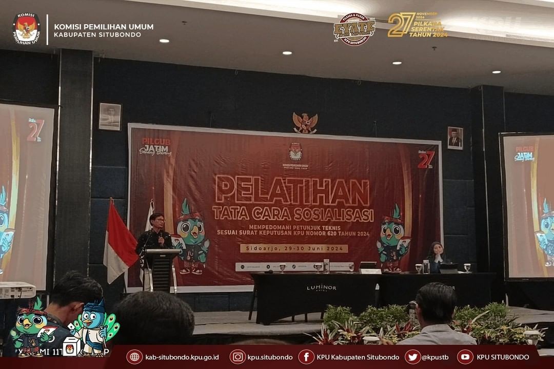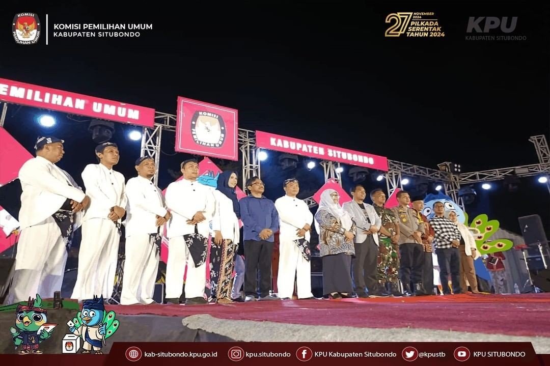 Komisi Pemilihan Umum (KPU) Kabupaten Situbondo menggelar acara peluncuran maskot dan jingle resmi untuk Pemilihan Bupati dan Wakil Bupati Kabupaten Situbondo Tahun 2024. Acara yang berlangsung pada Jumat malam, 28 Juni 2024, di Alun-alun Kabupaten Situbondo, dihadiri oleh berbagai elemen masyarakat, pejabat, serta pengurus KPU. Peluncuran maskot dan jingle ini merupakan bagian dari upaya KPU Kabupaten Situbondo untuk meningkatkan sosialisasi dan partisipasi masyarakat dalam pemilihan yang akan datang. Maskot dan jingle yang diluncurkan diharapkan dapat menarik perhatian masyarakat dan memberikan semangat baru dalam menghadapi Pemilihan Bupati dan Wakil Bupati. Ketua KPU Kabupaten Situbondo, Hadi Prayitno, dalam sambutannya mengatakan, "Peluncuran maskot dan jingle ini bertujuan untuk memberikan warna baru dalam proses sosialisasi pemilihan. Kami berharap, dengan adanya maskot dan jingle ini, masyarakat semakin antusias dan terlibat aktif dalam pemilihan nanti." Acara peluncuran dimulai dengan penampilan atraktif dari maskot pemilihan, yang dirancang untuk mencerminkan semangat demokrasi dan keterlibatan masyarakat. Maskot ini diharapkan dapat menjadi simbol positif dan mudah dikenali dalam setiap kegiatan sosialisasi pemilihan. Selain peluncuran maskot, jingle yang mengusung tema pemilihan yang adil dan partisipatif juga diperkenalkan kepada publik. Jingle ini dibuat dengan melodi yang ceria dan lirik yang mudah diingat, dengan tujuan untuk memperkuat pesan tentang pentingnya partisipasi dalam pemilihan. Selama acara, terdapat berbagai kegiatan hiburan dan penampilan dari kelompok musik lokal yang menambah suasana meriah di Alun-alun. Acara ini diakhiri dengan sesi foto bersama maskot dan pembagian merchandise bertema pemilihan kepada pengunjung sebagai bentuk apresiasi. Hadi Prayitno menambahkan, "Kami berharap peluncuran ini dapat memotivasi masyarakat untuk lebih aktif dalam proses pemilihan. Melalui maskot dan jingle ini, kami ingin menyampaikan pesan bahwa setiap suara sangat berarti dalam menentukan masa depan Kabupaten Situbondo." Dengan adanya peluncuran maskot dan jingle ini, KPU Kabupaten Situbondo berharap dapat menciptakan suasana yang lebih dinamis dan menarik menjelang Pemilihan Bupati dan Wakil Bupati 2024, serta meningkatkan partisipasi masyarakat dalam pemilihan.