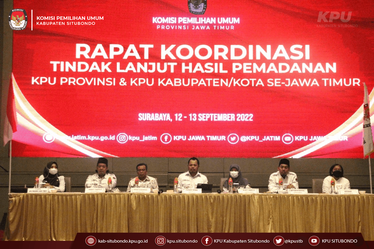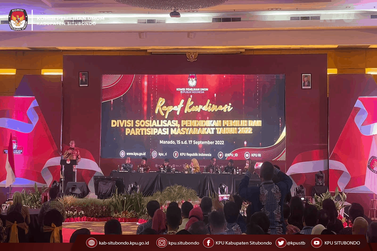 Situbondo, kab-situbondo.kpu.go.id – KPU Kabupaten Situbondo hadiri kegiatan Rapat Koordinasi Divisi Sosialisasi, Pendidikan Pemilih dan Partisipasi Masyarakat Tahun 2022. Kegiatan berlangsung selama tiga hari, 15 – 17 September 2022 yang bertempat di Manado, pukul 20:00 WITA - selesai. Acara dibuka langsung oleh Ketua KPU RI, Hasyim Ashari dalam sambutannya mengatakan bahwa pemilu 2024 sendiri memiliki tantangan dan kerumitan yang berbeda dibanding pemilu sebelumnya. Salah satunya melaksanakan pemilu dan pemilihan di tahun yang sama, dengan kompleksitas yang beragam dan irisan tahapan yang akan dilakukan bersamaan. Oleh karena itu dibutuhkan strategi yang tepat agar informasi kepemiluan disampaikan secara luas, baik kepada peserta pemilu dan masyarakat. Peserta pemilu dan publik pun selanjutnya memahami dan tergerak untuk terlibat baik selama tahapan maupun di hari dan pascapemungutan suara. “Terdapat tiga hal yang harus diperhatikan dalam penyampaian pesan. Yang pertama adalah kognitif, dimana pesan dapat dimengerti oleh pemilih sebagai audiens kita. Selanjutnya ada afektif, terkait sikap yang bagaimana yang kita harapkan muncul dari pemilih. Dan terakhir psikomotorik, yakni tergeraknya hati pemilih untuk turut berpartasi di pemilu, ” terang Hasyim dalam sambutannya. Sementara itu, August Mellaz selaku Ketua Divisi Sosialisasi, Pendidikan Pemilih, dan Partisipasi Masyarakat KPU Republik Indonesia berikan penjabaran faktor keberhasilan sistem informasi Parmas. “Dalam keberhasilan mengajak masyarakat untuk aktif berpartisipasi di pemilu, ada empat komponen atau elemen yang perlu kita push. Pertama ada pesan yang disampaikan, lalu penyampai pesan, kemudian audience, dan yang terakhir adalah media dan strategi komunikasi,” ujarnya. Kegiatan Rakor dihadiri oleh Divisi Sosialiasisasi, Pendidikan dan Partisipasi Masyarakat (Sosdiklih dan Parmas) KPU Provinsi dan Kabupaten/Kota se- Indonesia. Turut hadir pula perwakilan dari KPU Kabupaten Situbondo Imam Nawawi selaku Divisi Sosdiklih dan Parmas, serta Elisa Kustanty selaku Kasubbag Teknis Penyelenggaraan Pemilu, Partisipasi, Humas. (HK)