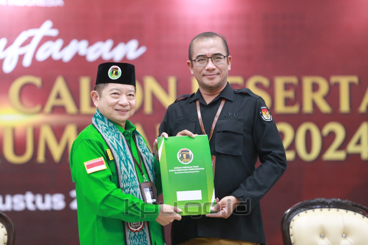 Jakarta, kpu.go.id - Partai Golongan Karya (Golkar) mendaftar sebagai Partai Politik Calon Peserta Pemilu Tahun 2024, Rabu (10/8/2022) di kantor KPU. Pendaftaran dilakukan oleh Ketua Umum Airlangga Hartanto didampingi Sekretaris Jenderal Lodewijk F Paulus dan Bendahara Umum Dito Ganinduto pada pukul 11.07 WIB. Delegasi partai disambut oleh Sekretaris Jenderal KPU Bernad Dermawan Sutrisno, didampingi Deputi Bidang Dukungan Teknis Eberta Kawima di lantai dasar (lobby) Gedung KPU, dan diterima oleh Ketua KPU Hasyim Asy'ari, Anggota KPU Idham Holik, August Mellaz, Mochammad Afifuddin, Betty Epsilon Idroos, Yulianto Sudrajat, dan Parsadaan Harahap, serta disaksikan oleh Bawaslu dan pemantau pemilu di Ruang Rapat Utama Gedung KPU. Turut hadir dari Partai Golkar di Ruang Rapat Utama Gedung KPU, Wakil Ketua Umum Nurul Arifin, Wakil Ketua Umum Agus Gumiwang Kartasasmita, Wakil Ketua Umum Doli Kurnia Tanjung, Wakil Ketua Umum Kahar Muzakir, Wakil Ketua Umum Adies Kadir, Ketua Bidang Meutiya Hafid, Ketua Penyelenggara Mukhamad Misbakhun, Ketua Bidang Ilham Permana, Narahubung (liaison officer) Imran Chatim, dan Narahubung (liaison officer) Ipang Wahid. (Humas KPU)