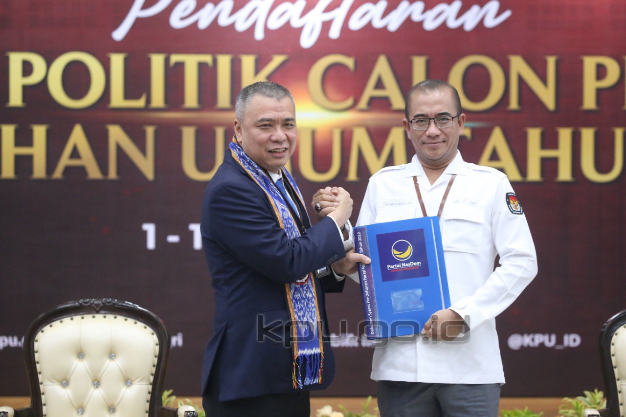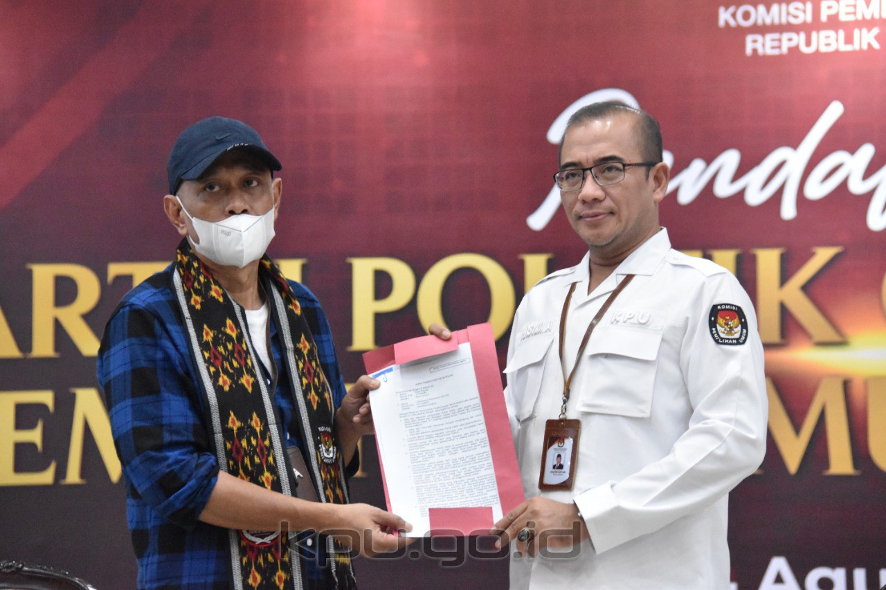 Delegasi partai disambut oleh Sekretaris Jenderal KPU Bernad Dermawan Sutrisno, didampingi Deputi Bidang Dukungan Teknis Eberta Kawima di lantai dasar (lobby) Gedung KPU, dan diterima oleh Ketua KPU Hasyim Asy'ari, Anggota KPU Idham Holik, August Mellaz, Mochammad Afifuddin, Betty Epsilon Idroos, Yulianto Sudrajat dan Parsadaan Harahap, serta disaksikan oleh Bawaslu di Ruang Rapat Utama Gedung KPU.