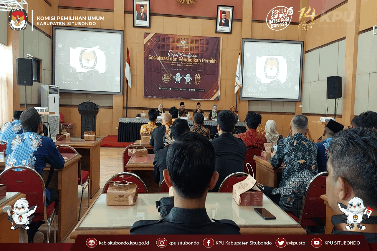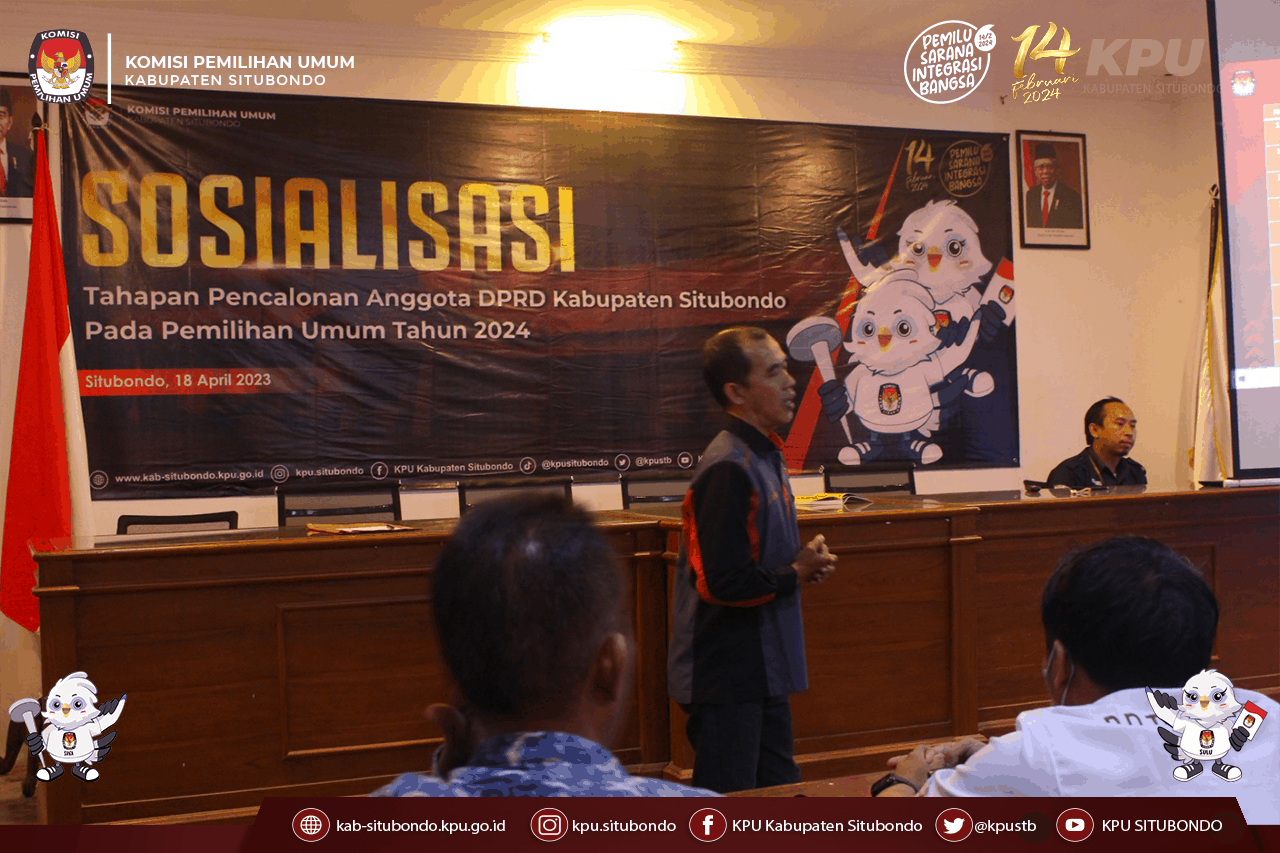 SITUBONDO, kab-situbondo.kpu.go.id - Komisi Pemilihan Umum (KPU) Kabupaten Situbondo menggelar sosialisasi penetapan daerah pemilihan dan alokasi kursi anggota DPRD Kabupaten Situbondo dalam Pemilihan Umum tahun 2024, bertempat di Aula lantai II Hotel Ad Lotus SMKN 1 Panji, Situbondo, Jawa Timur, Sabtu (18/3/2023).