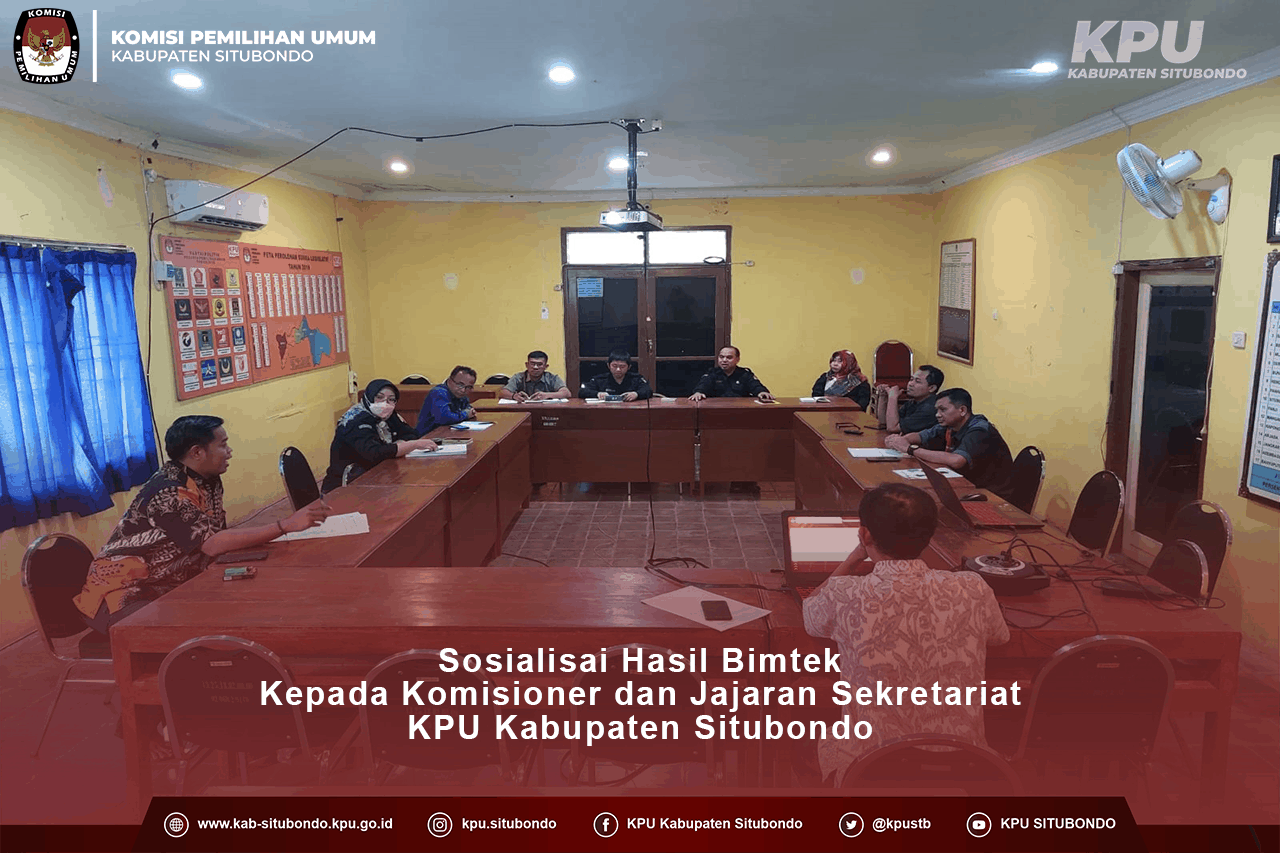 Situbondo, kab-situbondo.kpu.go.id - Peraturan KPU Nomor 4 Tahun 2022 resmi diundangkan. Untuk itu, Komisi Pemilihan Umum Kabupaten Situbondo melakukan sosialisasi PKPU tersebut kepada Jajaran Komisioner dan Sekretariat KPU Kabupaten Situbondo, di Ruang Media Center KPU Kabupaten Situbondo, Rabu (27/7/2022).