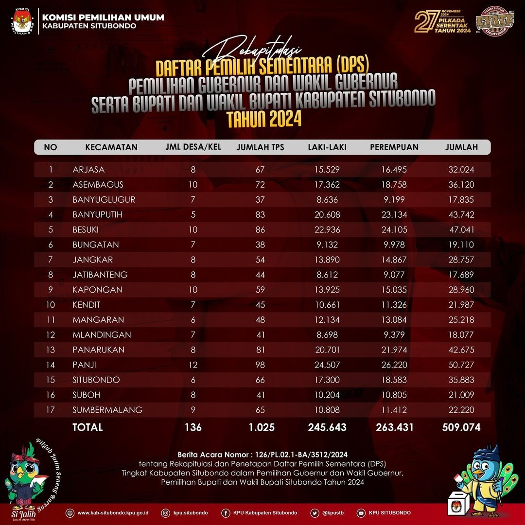 DAFTAR PEMILIH SEMENTARA (DPS) PEMILIHAN GUBERNUR DAN WAKIL GUBERNUR SERTA BUPATI DAN WAKIL BUPATI KABUPATEN SITUBONDO TAHUN 2024 Selasa, 20 Januari 1970 10:00 680 Berikut kami sampaikan Rekapitulasi Daftar Pemilih Sementara (DPS) Pemilihan Gubernur dan Wakil Gubernur serta Bupati dan Wakil Bupati Kabupaten Situbondo Tahun 2024. Baca Selengkapnya
