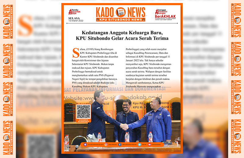 Kado News Edisi 19 Senin, 21 Maret 2022 09:00 50 #TemanPemilih berikut ini adalah Kado News Edisi 19 terbit pada Selasa, 21 Maret 2022. Baca Selengkapnya