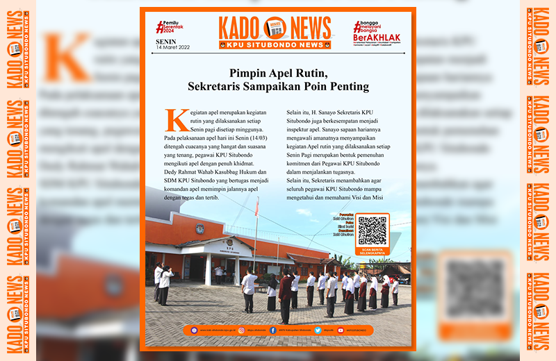 Kado News Edisi 13 Senin, 14 Maret 2022 08:35 59 #TemanPemilih berikut ini adalah Kado News Edisi 13 terbit pada Senin, 14 Maret 2022. Baca Selengkapnya